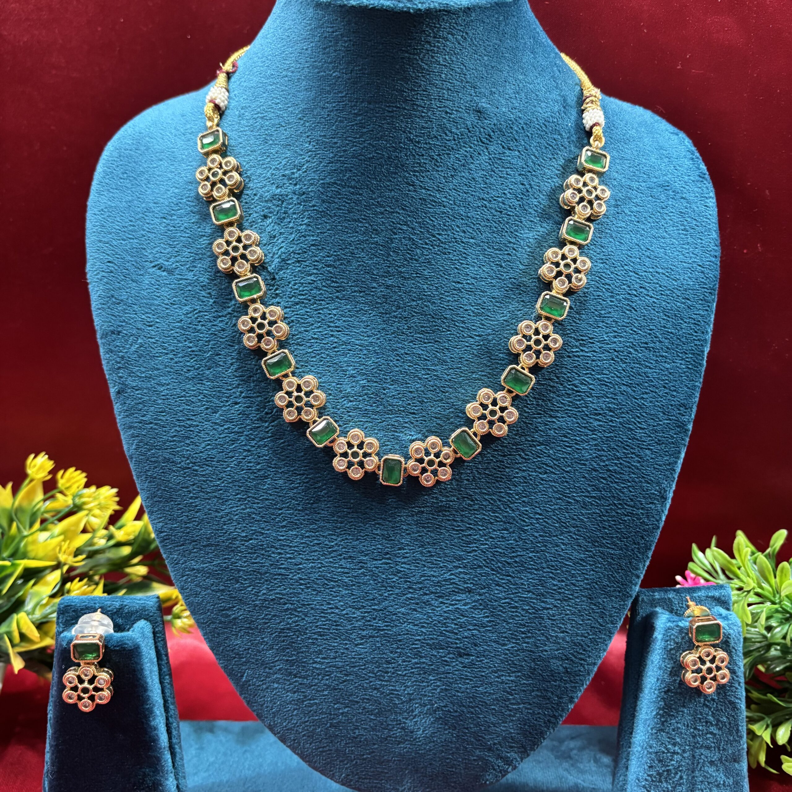 Bring timeless charm to your jewellery collection with the Shevora Beautiful Green AD Stone Matte Finish Necklace Set.