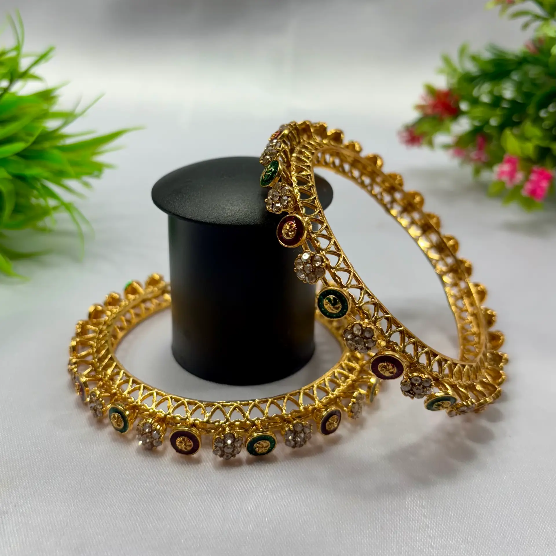 Gold Plated Stone Bangles Set – Elegant & Stylish Jewelry